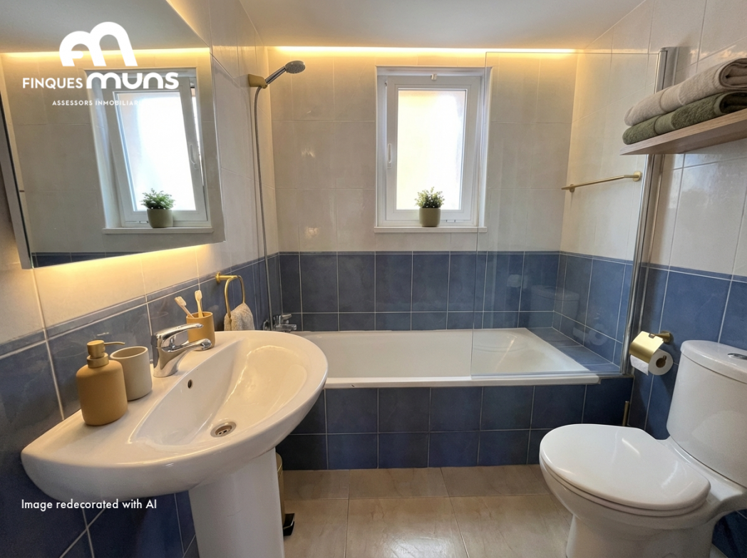 L’habitatge disposa de 3 habitacions (2 dobles i 1 individual), perfectes com a dormitoris, despatx o sala polivalent. Té 2 banys complets, funcionals i ben distribuïts.