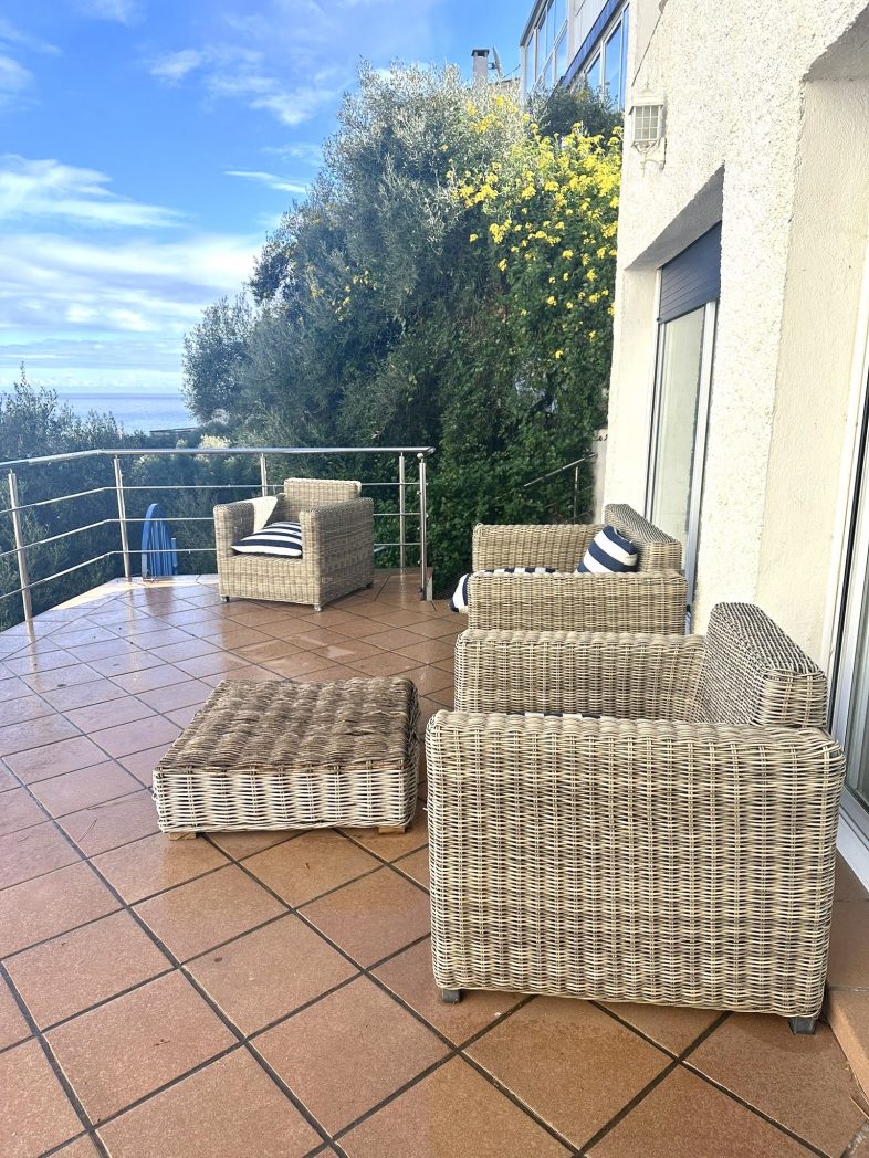 Each floor features a spacious and bright living room, with direct access to a terrace and sea views, functional and well-equipped kitchens, as well as a layout designed for day-to-day living. In total, the property has 7 bedrooms and 5 bathrooms, offering enough space for large families or guest stays.