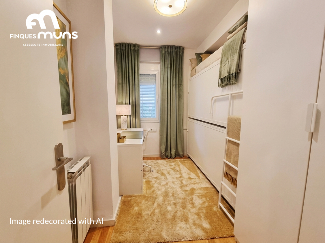 L’habitatge ofereix una distribució còmoda i funcional. Totalment exterior, disposa d’una suite amb bany privat i armaris encastats, una habitació doble i una habitació individual, ideal tant per famílies com per a qui busqui espais polivalents per treballar o convidats.