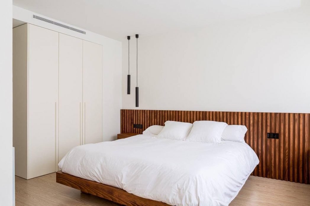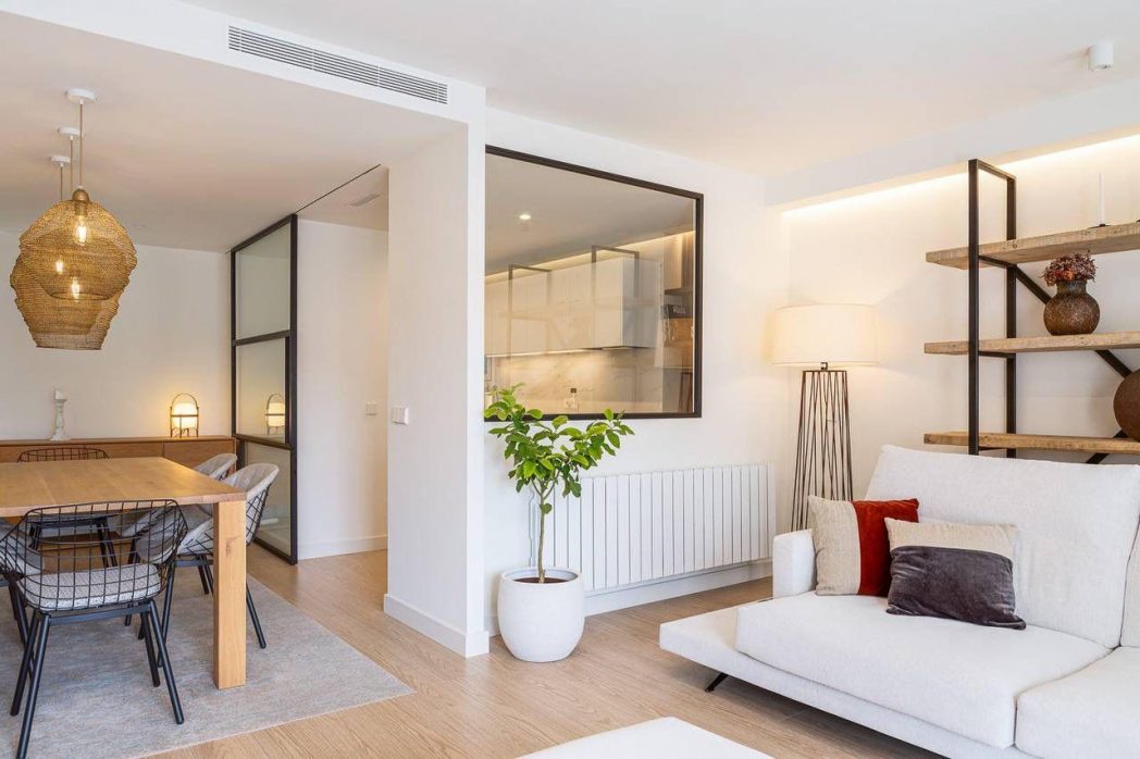 Disposa de tres habitacions dobles amb armaris encastats, dos banys complets de disseny contemporani (un amb dutxa tipus pluja i l’altre amb banyera i dutxa integrada), i una àmplia zona de dia amb saló-menjador i cuina oberta, equipada amb electrodomèstics d’alta gamma i acabats en tons neutres.