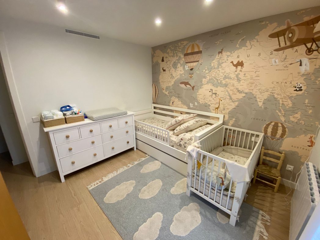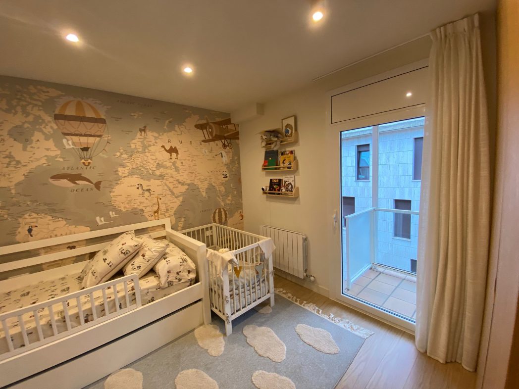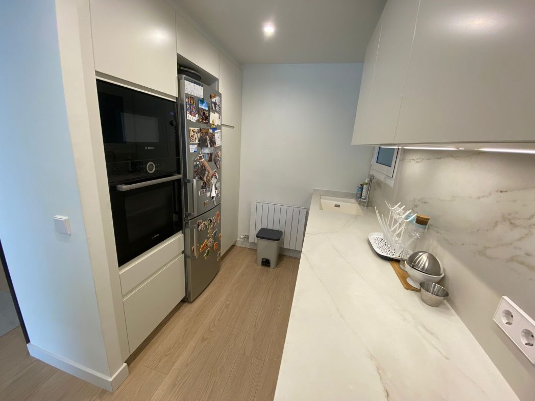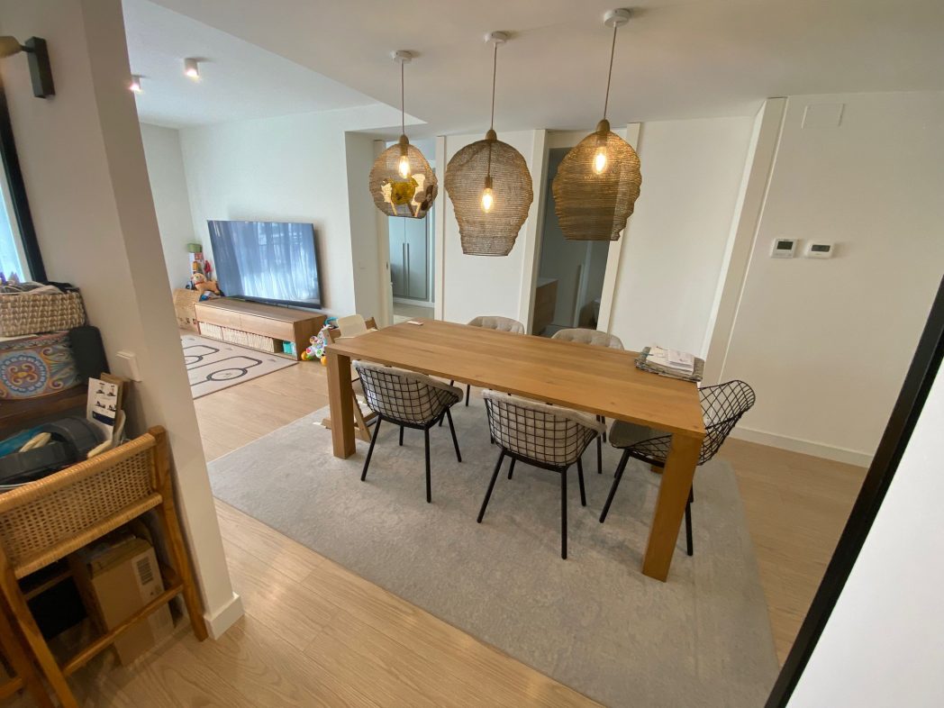 Disposa de tres habitacions dobles amb armaris encastats, dos banys complets de disseny contemporani (un amb dutxa tipus pluja i l’altre amb banyera i dutxa integrada), i una àmplia zona de dia amb saló-menjador i cuina oberta, equipada amb electrodomèstics d’alta gamma i acabats en tons neutres.